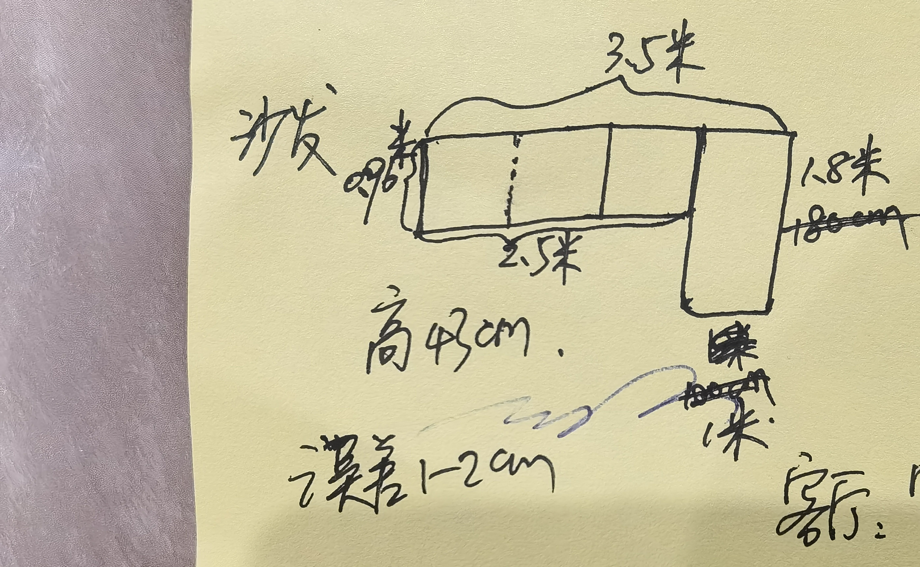 沙发宽3.5米,具体尺寸见图3